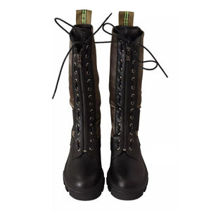 • Gaelle Black Green High Combat Boots Lace Up Military Shoes