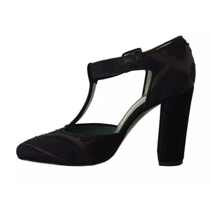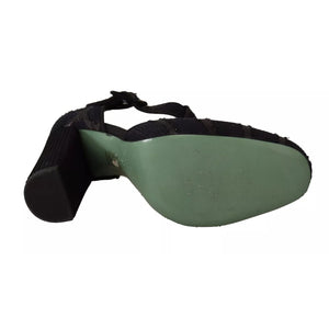 Paola D'Arcano Black Suede Leather Block Heels Sandals Shoes